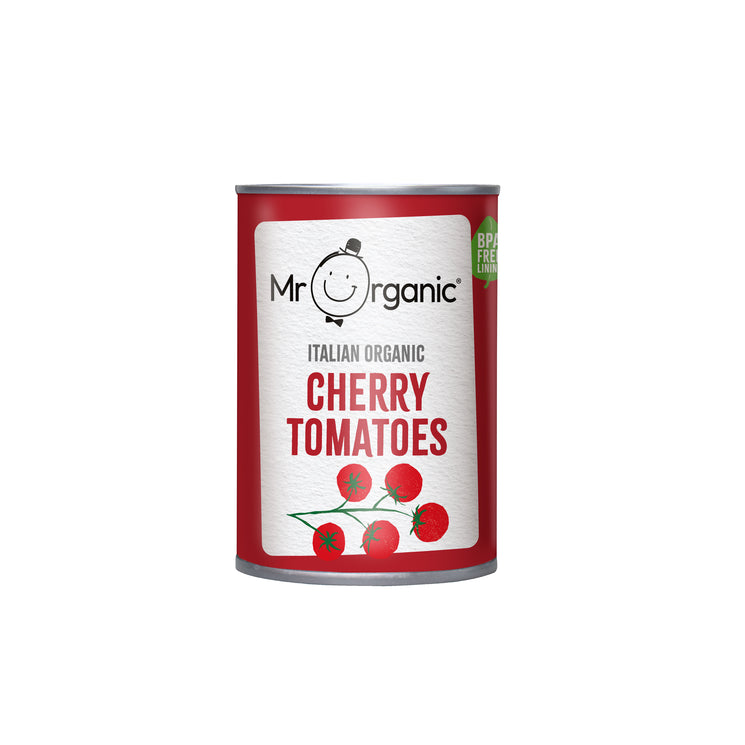 Juicy, sun-ripened Organic Italian cherry tomatoes, packed within a few hours of harvest, keeping their flavour and freshness fully intact. All our tomato products are made at our own sustainable production base next to our farms in Italy and we can track each tomato back to the field in which it was grown. We build long-lasting relationships with our farmers and when it comes to selecting our food, we make sure that only the best goes inside our jars and tins. All Mr. Organic food is made with organically grown ingredients and love for our planet.