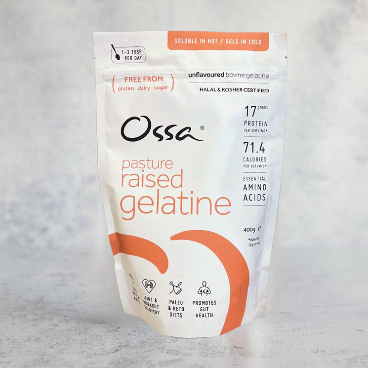 Sourced from 100% pasture-raised beef, our gelatin is a powerhouse of clean protein and collagen, supporting gut health, joint function, and glowing skin. Free from additives and fillers, it dissolves effortlessly into warm liquids, making it perfect for homemade gummies, broths, desserts, and daily wellness rituals. Whether you're looking to nourish your body, support digestion, or boost your beauty routine, this high-quality gelatin is a pantry essential.