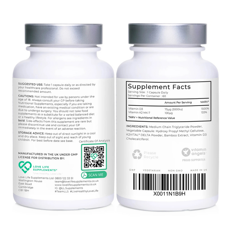 Vitamin D is essential for maintaining a healthy immune system, strong bones, and overall wellbeing. The NHS recommends everyone consider taking daily vitamin D during the autumn and winter months. This supplement combines Vitamin D3 with a highly stable form of Vitamin K2 (K2Vital®), which works synergistically to ensure calcium is efficiently absorbed and directed to the bones.