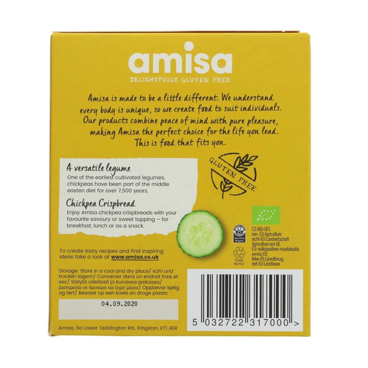 Chickpeas have been enjoyed for over 7,500 years and with these organic chickpea crispbreads, that tradition continues. Made from a simple blend of white rice, yellow pea flour, and chickpeas, these crispbreads are light, versatile and delicious. Whether topped with sweet spreads or savoury fillings, they offer a nutrient-rich base for snacks, breakfasts or light meals.