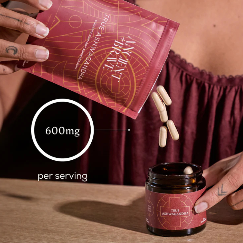 Rooted in ancient Ayurvedic tradition, Ancient + Brave True Ashwagandha delivers a potent daily dose of adaptogenic support using clinically studied KSM-66® extract. This highly bioavailable, root-only form helps the body adapt to modern life’s daily stresses, promoting resilience, emotional balance, energy, and calm focus.