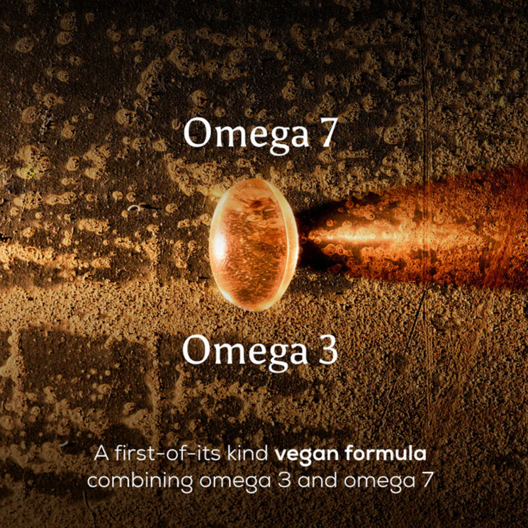Plant-based omega formula combining Omega 3 (EPA & DHA) from algae and Omega 7 from sea buckthorn