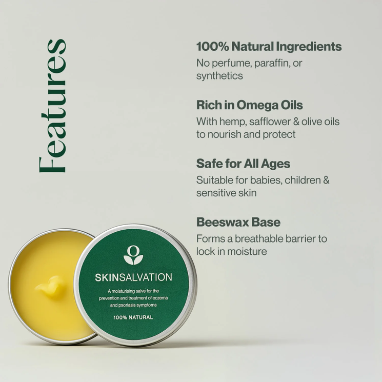 Balmonds Skin Salvation is a gentle, all natural barrier balm created to support dry, fragile and eczema prone skin. Dermatologically tested on atopic skin, the fragrance free formula helps protect the skin barrier, reduce moisture loss and shield against everyday irritants. Rich in nourishing plant oils, beeswax and calming herbal extracts, it can be used daily as an emollient to keep skin soft and comfortable, or applied during flare ups to soothe itchy, inflamed areas. Suitable for use on the face, hands, body and nappy area, it’s designed for the whole family.
