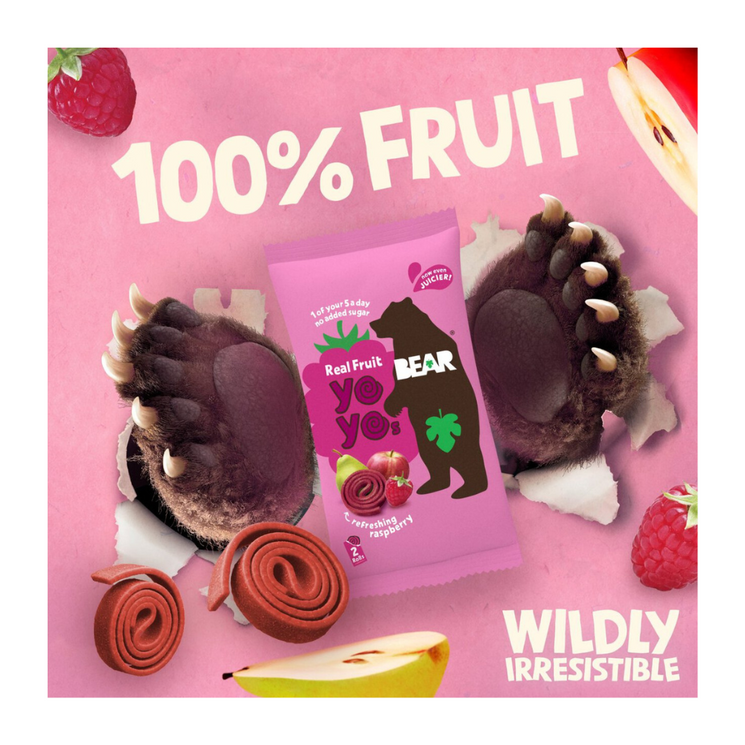 BEAR Fruit Yoyos Raspberry are delicious, naturally sweet fruit rolls made simply from whole fruit gently baked. With no added sugar, no concentrates and nothing artificial, these fun, chewy yoyos are perfect for healthy snacking anytime. Packed in convenient individual portions, they’re great for lunchboxes, road trips or after-school treats.