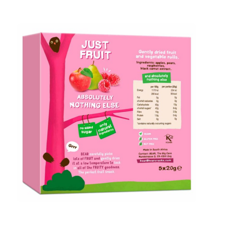 Made from real apples, pears, raspberries and a touch of black carrot extract.