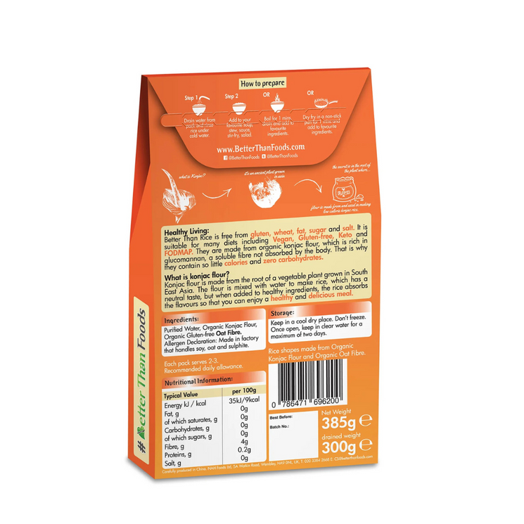 Organic, plant-based konjac rice a perfect low-carb alternative to regular rice.