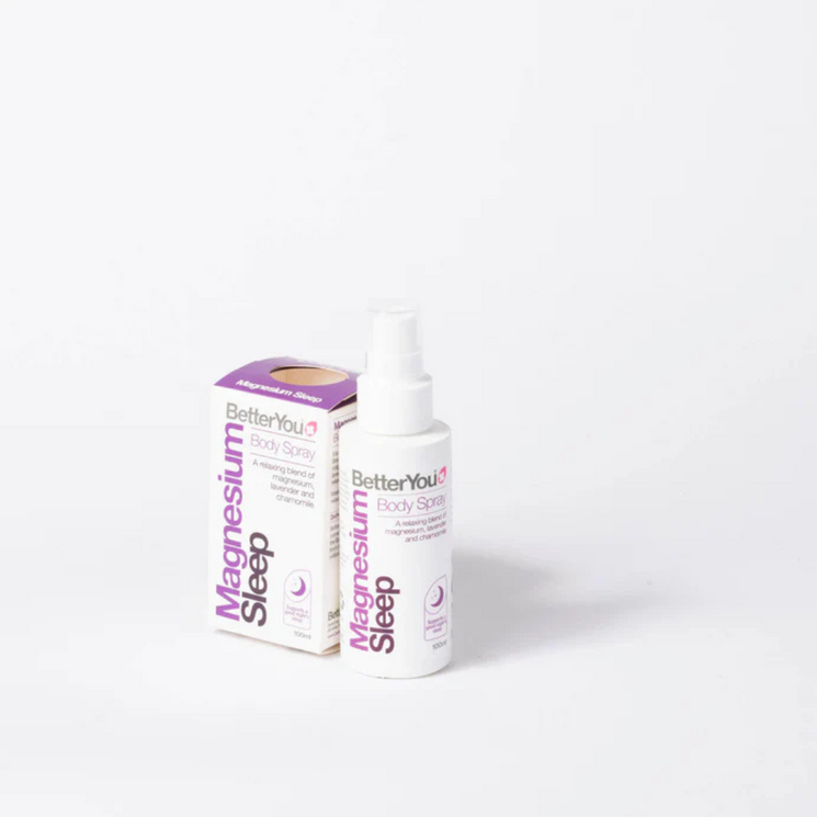 BetterYou Magnesium Sleep Body Spray offers a simple and effective way to restore magnesium levels while promoting natural relaxation before bedtime. The soothing combination of magnesium with calming lavender and chamomile helps ease both body and mind into a restful sleep routine.