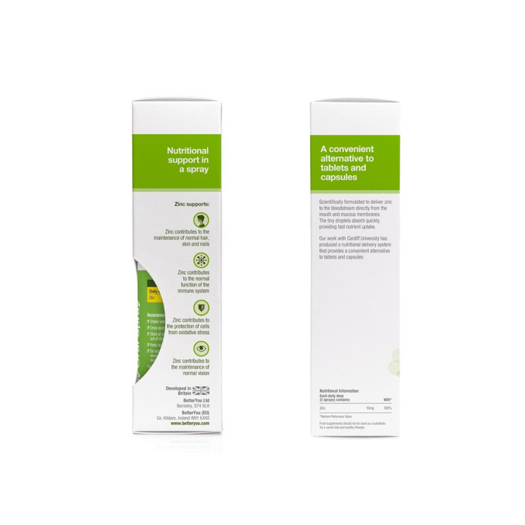 BetterYou Zinc Daily Oral Spray offers an innovative, fast-absorbing way to maintain optimal zinc levels. With micro-droplet technology, it bypasses digestion to deliver zinc directly into the bloodstream, supporting immunity, wound healing, skin health and essential body functions. Perfect for those who struggle with tablets or prefer a convenient spray format.