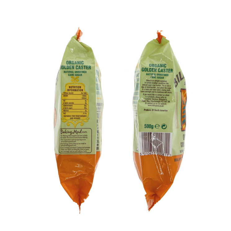 Light, fine-grained organic golden caster sugar with a subtle buttery taste.