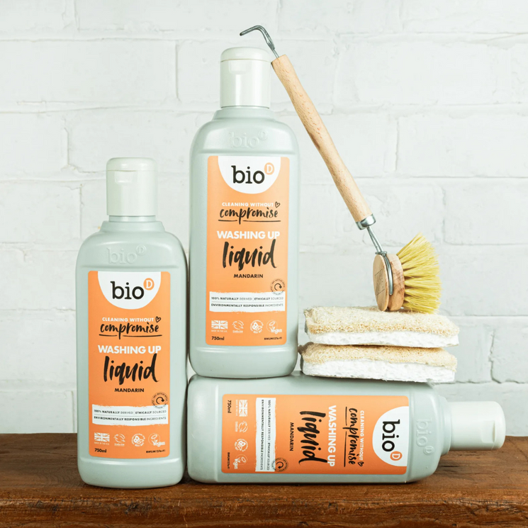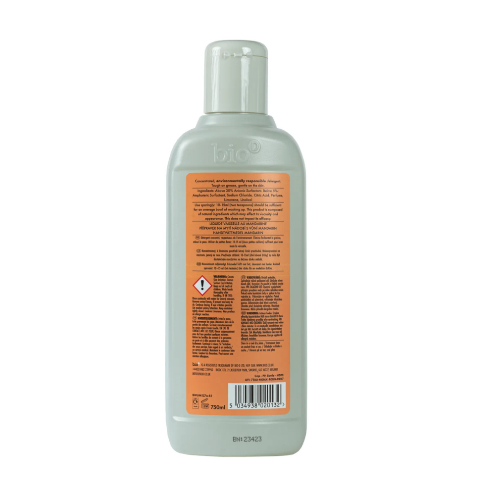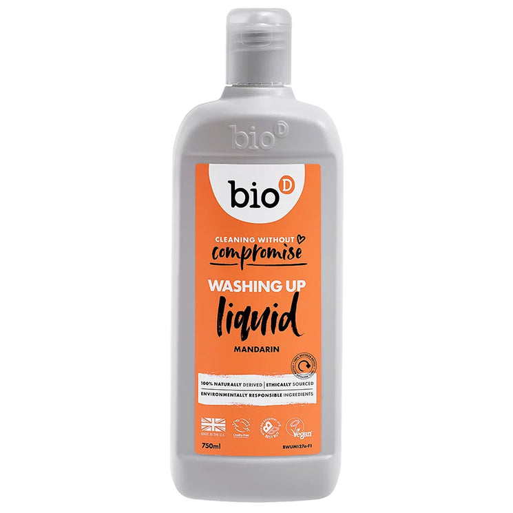 A fresh twist on your daily dishwashing! This zingy Bio-D Mandarin Washing Up Liquid is made using only the gentlest plant-based ingredients and essential oils. Tough on dirt, kind to the planet, and beautifully fragranced it's your eco-conscious sink-side hero. Every bottle is made using 100% post-consumer waste packaging and powered by solar energy in the UK.