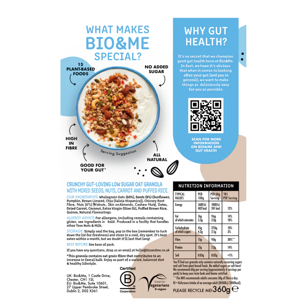 Bio&Me Low Sugar Natural Gut Loving Vegan Granola 360g