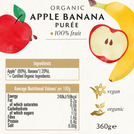 This gently blended organic puree combines 80% apple with 20% banana for a naturally sweet, velvety fruit blend that’s delicious on its own or added to porridge, yoghurt or baking. With no additives, sweeteners or concentrates, it's a wholesome choice for weaning or nourishing snacks just simple, honest fruit goodness.