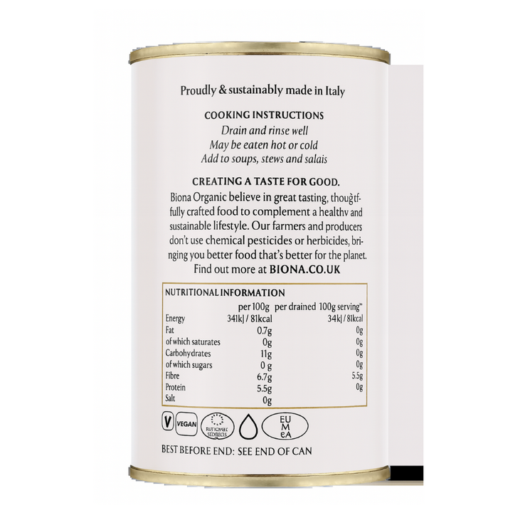 These organic butter beans are big on texture and nutrition smooth, satisfying, and packed with fibre and protein. Grown without synthetic pesticides or fertilisers, they’re cooked and ready to use straight from the tin. A brilliant plant-based staple for quick, wholesome meals any day of the week.