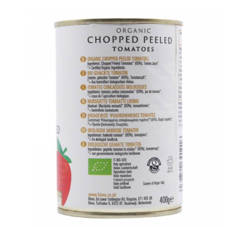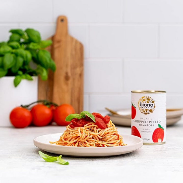 Biona Organic Chopped Tomatoes are made from sun-ripened Italian tomatoes, carefully peeled and chopped before being packed in a naturally rich tomato juice. With no added sugar, salt or citric acid, they’re a pure, delicious base for countless home-cooked meals. This 4-pack multipack gives you even more organic goodness ready when you need it.