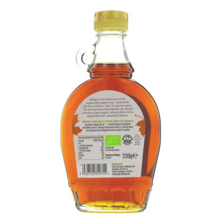 This bold and flavourful dark maple syrup is a kitchen essential for those who love a richer taste. Ideal for sweetening everything from morning oats to savoury marinades, its deep amber colour and complex caramel notes make it a luxurious natural sweetener. Crafted from the sap of organic maple trees, it's an authentic, minimally processed treat that’s as pure as it gets.