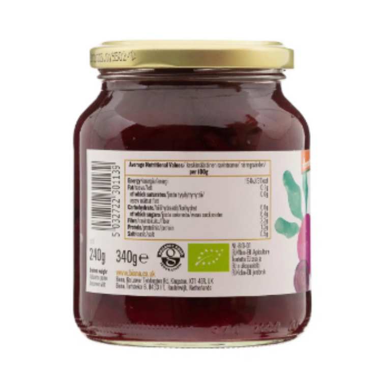 Beetroot**(77%), Water, Vinegar*, Sea Salt, Agave Syrup*, Sea Salt, Onion Powder*, Black Pepper* **