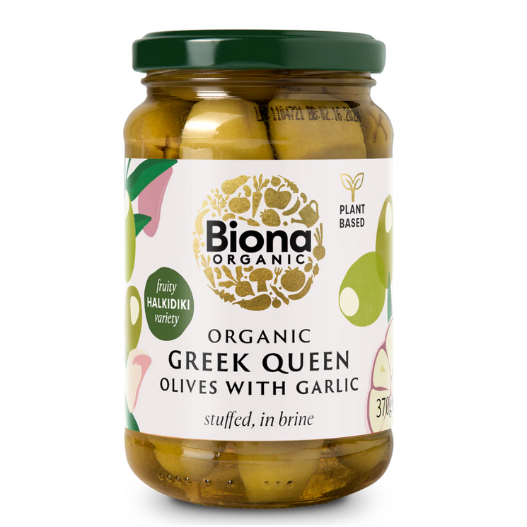Biona Organic Greek Queen Olives with Garlic 370g