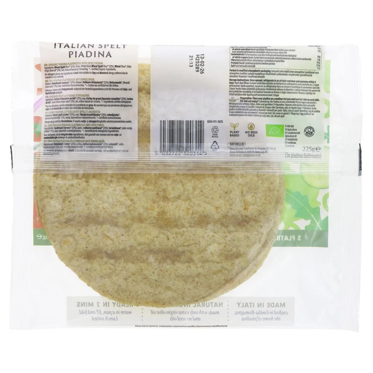 These piadina are wonderfully versatile soft enough to fold, sturdy enough to hold generous fillings, and quick to prepare when time is short. Their mild, wheaty flavour pairs beautifully with both savoury and fresh ingredients. Made with organic spelt and olive oil, they feel like a wholesome upgrade on standard flatbreads, helping you create simple, satisfying meals with minimal effort.