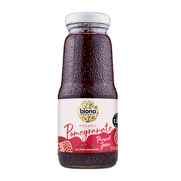 Biona Organic Pomegranate Juice is pressed from carefully selected, organically grown pomegranates for a naturally vibrant and refreshing drink. Never from concentrate, it retains the fruit’s natural sweetness and tart edge, delivering a pure and authentic flavour. Pomegranates are naturally rich in antioxidants, supporting overall wellbeing as part of a balanced lifestyle. Enjoy it chilled as a drink, blended into smoothies, or as a base for mocktails.