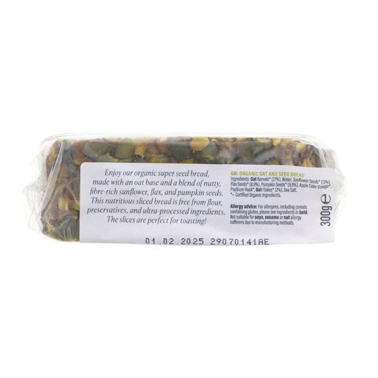 Biona Organic Super Seed Bread is a hearty loaf packed with wholegrain oats and nutrient-dense seeds. Made with sunflower, flax, and pumpkin seeds, it delivers a rich, nutty flavour and a wholesome texture.