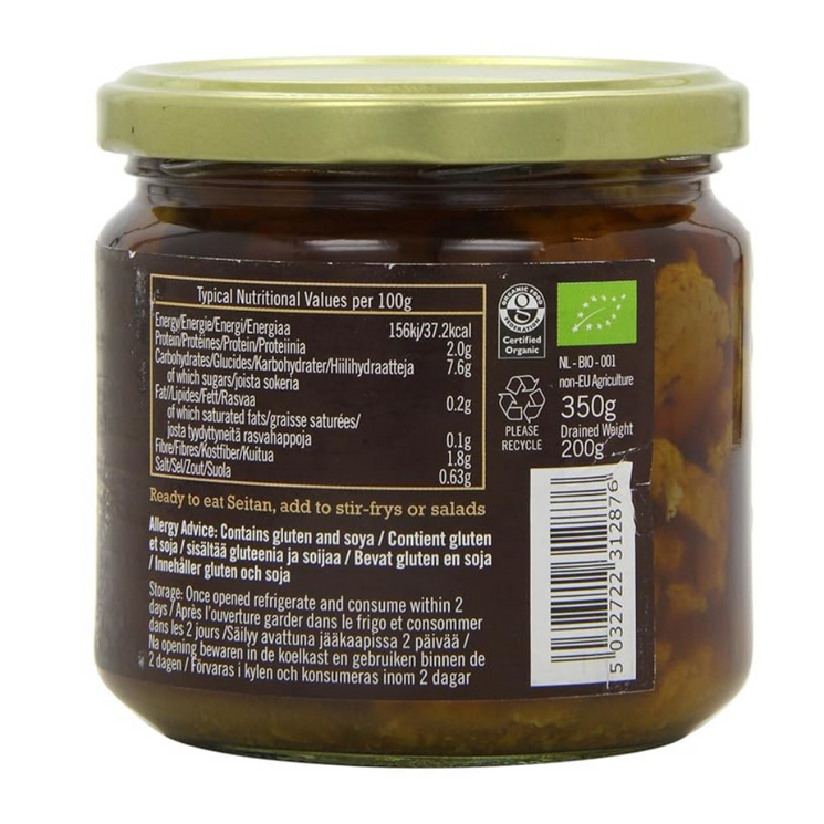 Biona Organic Seitan in Soya Sauce & Ginger is a savoury, protein-rich meat substitute made from organic wheat gluten and wheat flour. Simmered in tamari and ginger with a touch of kombu, this pre-cooked seitan is bursting with flavour and ready to use in your favourite recipes. Whether you're going for a stir-fry or a hearty wrap, it’s a delicious way to add depth, texture, and nourishment to your meals.