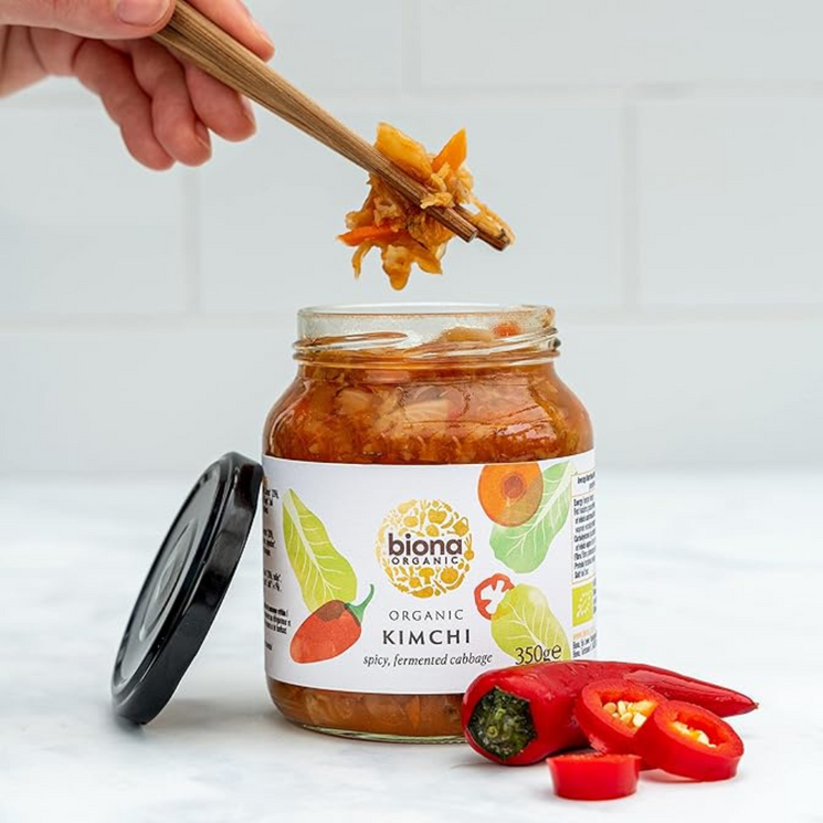 Biona Organic Spicy Kimchi is a fiery, probiotic-rich take on the traditional Korean staple. Fermented the natural way with carefully selected organic veg and aromatic spices, this raw kimchi offers both bold flavour and natural digestive support. It’s a tasty, live condiment perfect for rice bowls, salads, wraps or eating straight from the jar.