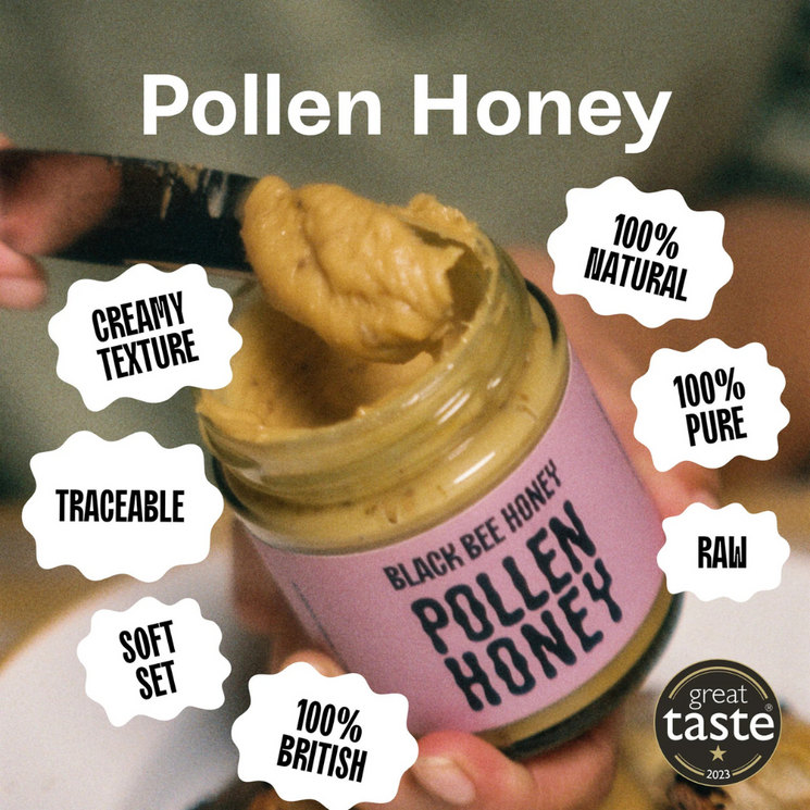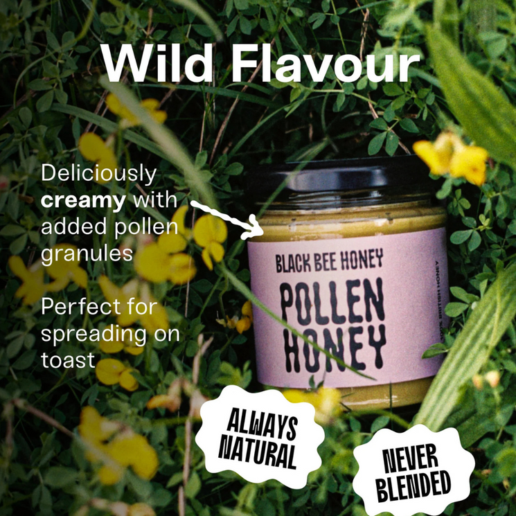 Black Bee Pollen Honey combines smooth, creamy honey with the added benefits of bee pollen. Known for its rich nutrient profile, bee pollen brings extra depth to the honey’s flavour and boosts its natural properties.