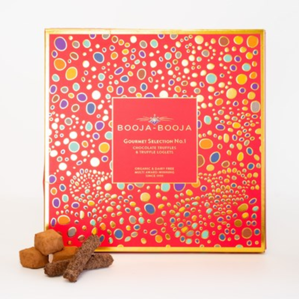 The Booja Booja Gourmet No.1 Chocolate Selection brings together seven exquisite flavours crafted with organic ingredients and melt in the mouth smoothness. With truffles, truffle loglets and even a truffle star, this beautiful collection is a celebration of creativity and pure chocolate pleasure. Each piece is handmade with creamy coconut oil, rich cocoa, dried fruit, nuts and delicate flavourings offering a luxurious treat suitable for vegan, dairy free and gluten free diets.