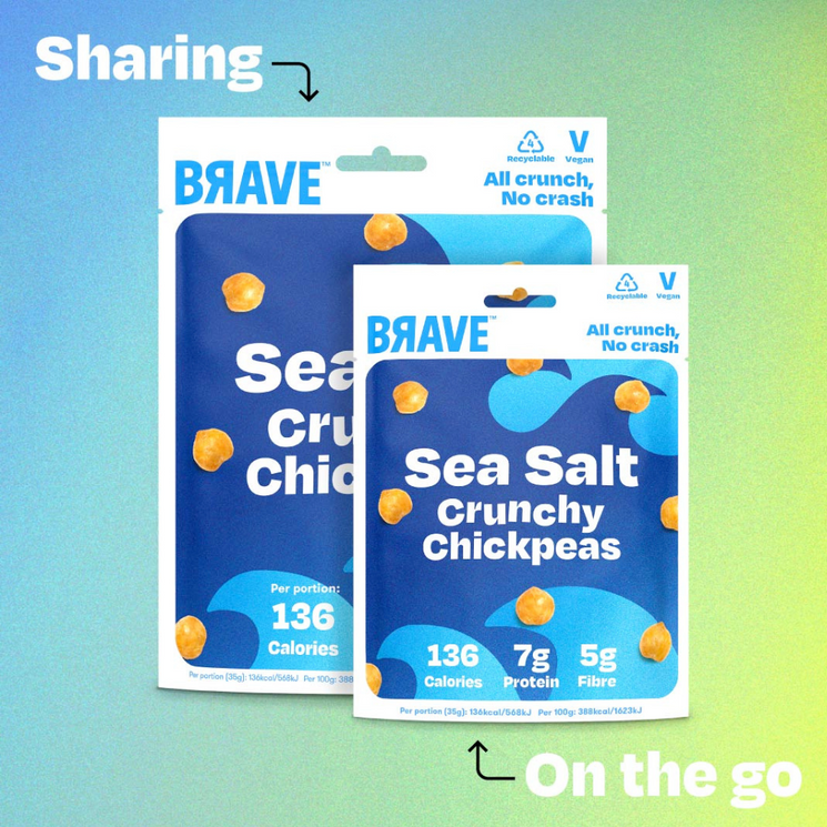 Brave keep things simple with this delicious snack: just roasted chickpeas, a touch of sea salt, and a drizzle of rapeseed oil. High in protein and fibre, these crunchy bites make the perfect healthy alternative to traditional snacks big on flavour, light on guilt.