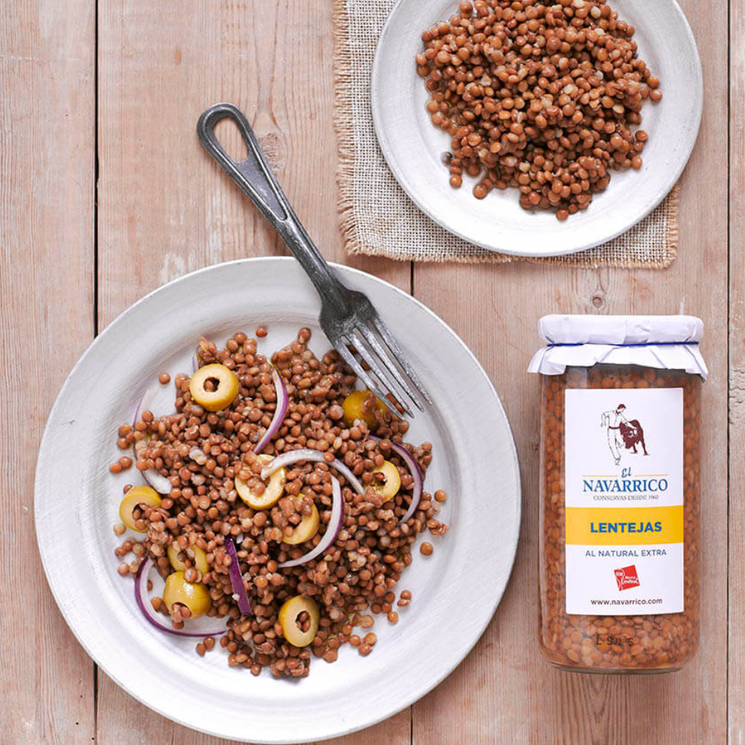Premium cooked Spanish lentils from León, prepared in Navarra