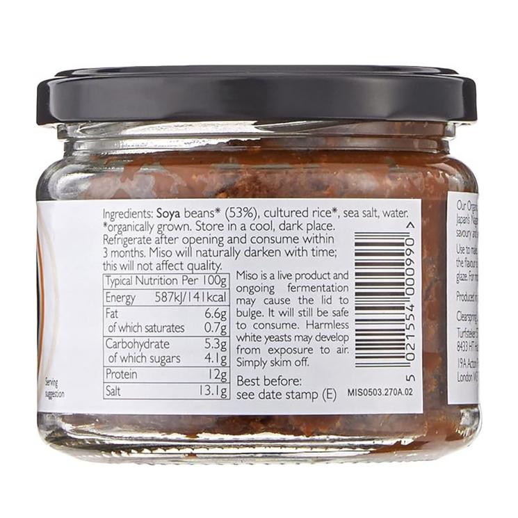 Clearspring Organic Brown Rice Miso is a traditional Japanese seasoning crafted from whole soybeans, cultured brown rice, and sea salt. Naturally fermented, it delivers a savoury depth of flavour while offering a generous boost of plant-based protein. Perfect for soups, glazes, or enhancing sauces, this miso is a wholesome and versatile addition to your kitchen.