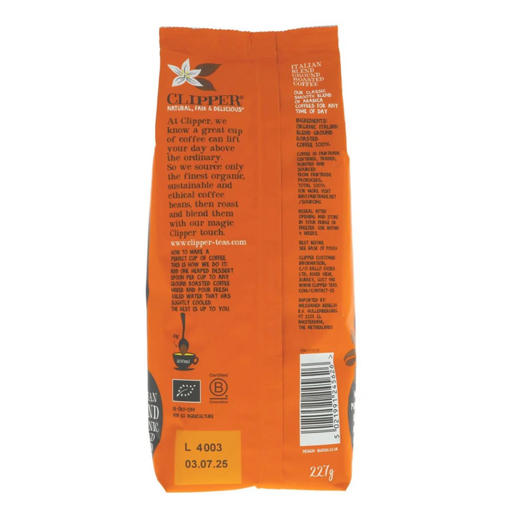 Clipper Fairtrade Organic Italian Blend Roast & Ground Coffee 227g