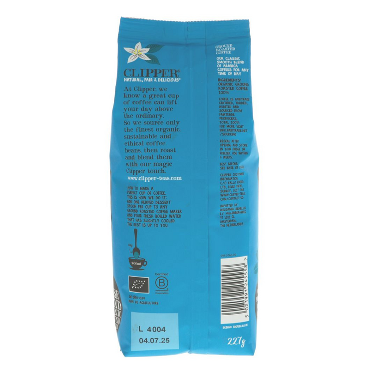 Clipper’s House Blend is your go-to organic roast for everyday brewing. With a mellow yet flavourful character, it’s ideal for any time of day. Enjoy the comforting balance of smoothness and richness, crafted from responsibly sourced beans and roasted with care for a well-rounded cup every time.