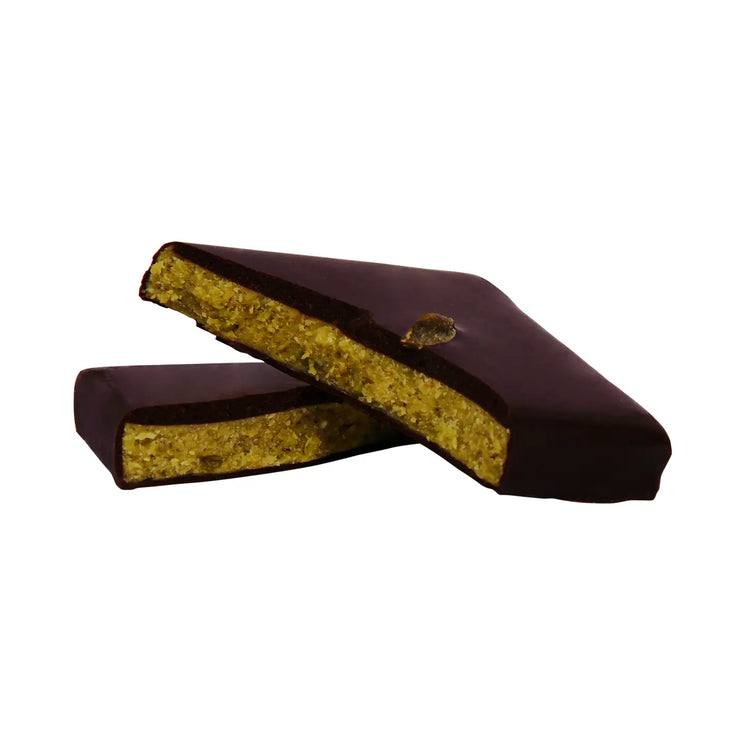 This luxurious, functional chocolate blends the indulgence of pistachio butter with the adaptogenic benefits of Lion’s Mane mushroom. Wrapped in 75% dark raw chocolate and sweetened naturally with dates, it's the perfect guilt-free treat. With each piece containing brain-boosting botanicals and creamy nut butter, it’s a mindful delight for the chocolate connoisseur.