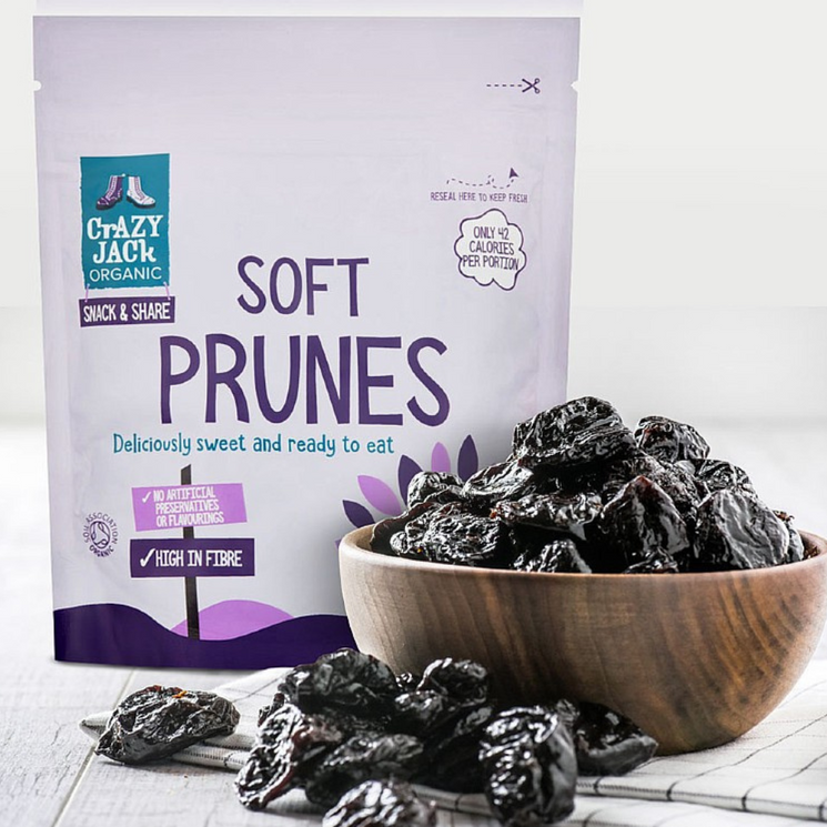 Crazy Jack Organic Prunes are carefully selected and dried to retain their natural sweetness and soft texture all without sulphites, artificial preservatives or added sugars. Juicy and satisfying, they’re an easy way to enjoy fruit fibre on the go or in your recipes.