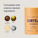 DIRTEA Chaga Gummies offer clean, steady energy and immune support in a juicy lemon-flavoured chew. Each 2-gummy serving delivers 3,000mg of dual-extracted Inonotus obliquus (Chaga) alongside your full recommended daily intake of vitamin C and zinc — all without added sugar.