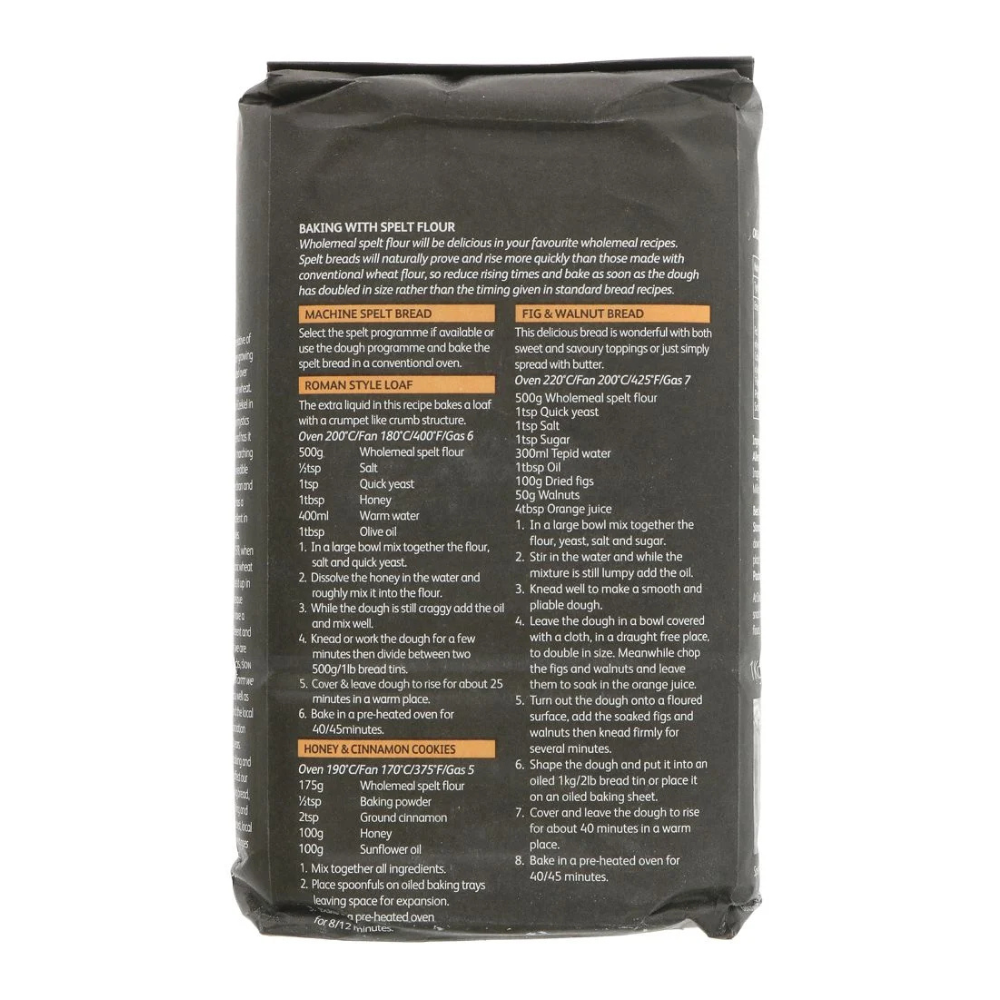100% organic stoneground wholemeal spelt flour