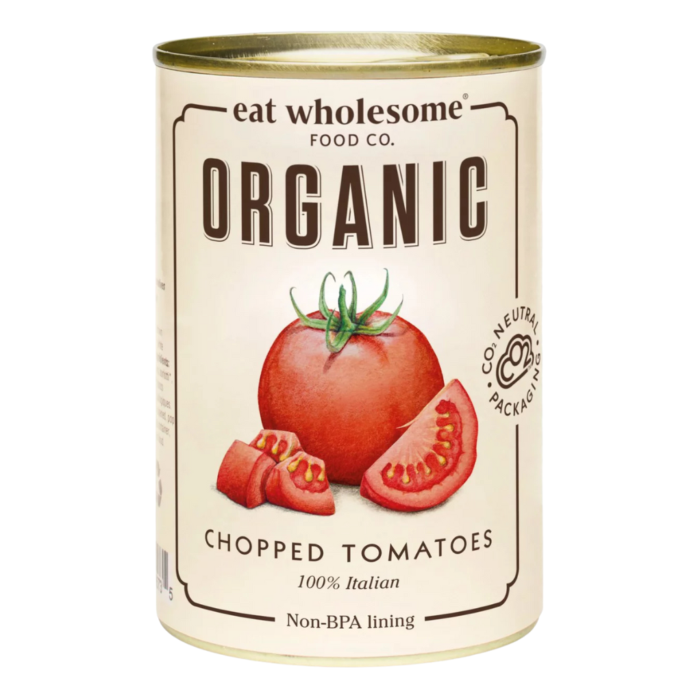 Eat Wholesome Organic Chopped Tomatoes are made with carefully selected organic tomatoes, picked at their ripest and packed in rich tomato juice. With no added sugar, salt, or preservatives, they’re a clean, wholesome base for countless recipes.