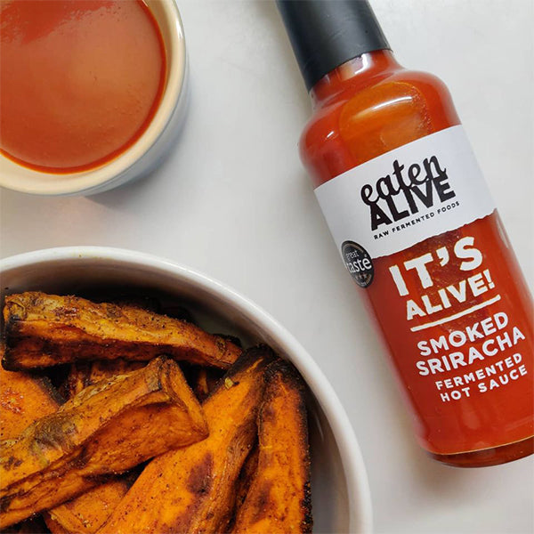 This isn’t your average hot sauce Eaten Alive’s Smoked Sriracha is raw, fermented, and absolutely bursting with flavour. Made with smoked chilli, red pepper, garlic and miso, it delivers rich umami heat and gentle tang from natural fermentation.