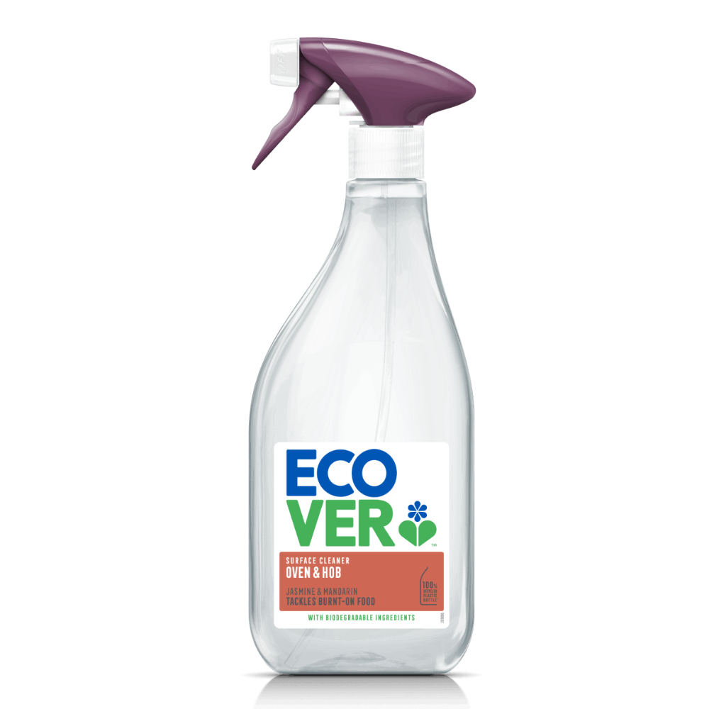 Ecover Oven & Hob Cleaner is an eco-friendly, effective cleaning spray designed to tackle tough grease and grime on ovens, hobs, and other kitchen surfaces. Formulated with biodegradable ingredients, it provides a powerful clean while being kind to the environment and safe for septic tanks. The packaging is also planet-conscious — the bottle is made from 100% post-consumer recycled plastic and the trigger contains 30% recycled content.
