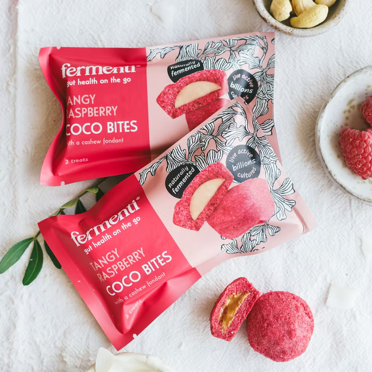 These delightful bite-sized treats combine the tart brightness of raspberries with the smooth, creamy texture of fermented coconut and cashew butter. Naturally sweetened with maple syrup, they offer a balanced flavour profile that’s both satisfying and refreshing.