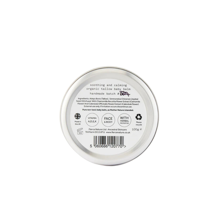 Fierce Nature Baby Balm is a loving, natural solution for protecting your baby’s sensitive skin. With organic tallow and botanical infusions, it offers gentle, effective care for dry patches, irritation, or daily moisture without any unnecessary additives.