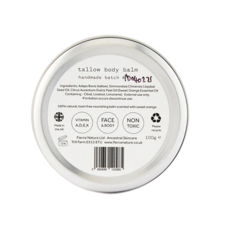 Fierce Nature Pure Organic Tallow Nourish Balm Sweet Orange 100g
