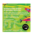 Premium skipjack tuna steaks packed in organic extra virgin olive oil
