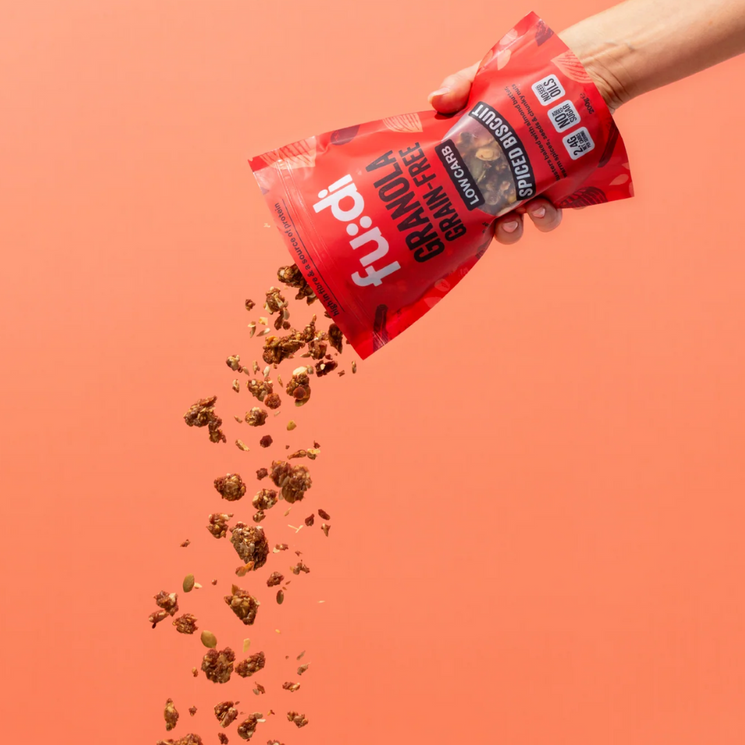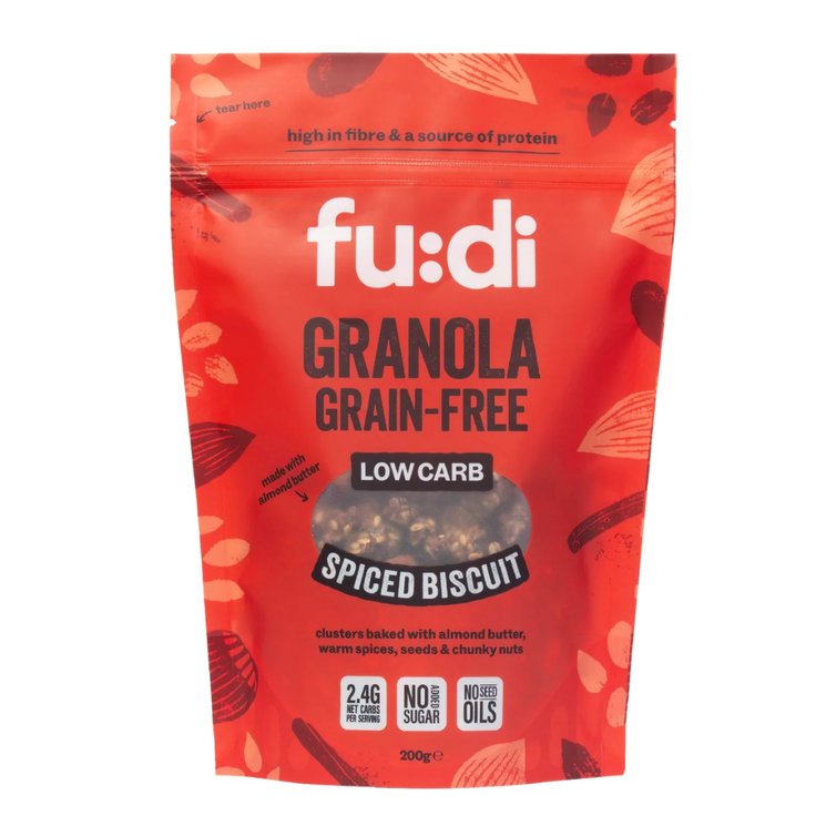 Fudi Granola Spiced Biscuit is a nourishing, crunchy granola packed with nuts, seeds, and the comforting flavour of speculoos spice. Blended with avocado oil, chicory root fibre, and natural plant-based sweeteners, it’s a wholesome low carb breakfast or snack option designed to satisfy without the sugar spikes.