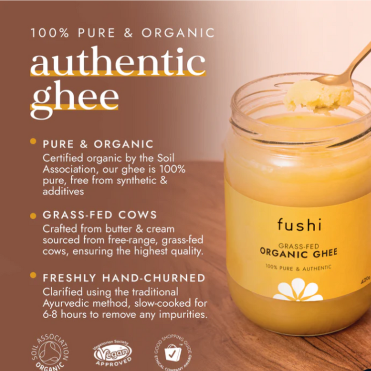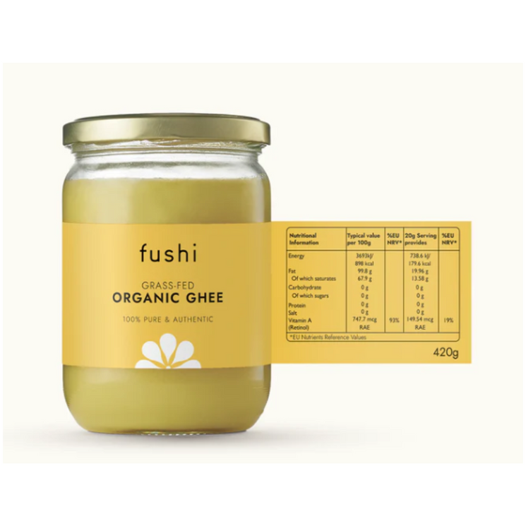 With its rich, nutty flavour and creamy texture, Fushi Organic Ghee adds depth and nourishment to everyday cooking. Beyond the kitchen, it’s equally cherished for its traditional use in self care, helping to soften and rejuvenate the skin.