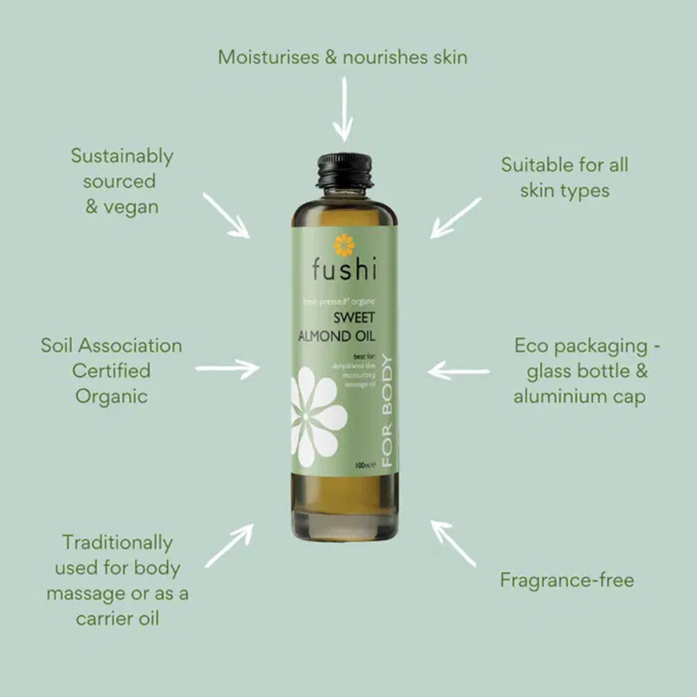 Fushi Organic Sweet Almond Oil is a light, nutrient rich oil freshly pressed from organically grown Spanish almonds and bottled in Germany to the highest standards. Cold pressed and unrefined, it preserves its natural vitamins and essential fatty acids, delivering pure nourishment without additives.