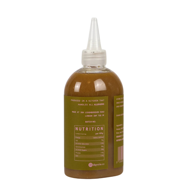 Grette Umami Miso Vinaigrette brings a bold twist to everyday cooking. Crafted with sweet honey, fermented white miso, and tangy rice wine vinegar, it delivers the perfect balance of sweet, salty, and savoury. A touch of sesame oil and soy sauce rounds out the flavour, making it a delicious partner for salads, grilled vegetables, or marinades.
