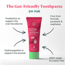 Gutology Strawberry Kids Toothpaste is designed to make brushing enjoyable, safe, and effective for children. With biomimetic hydroxyapatite to strengthen enamel, xylitol to help prevent decay, and Lactobacillus Ferment (TrueBiotic®) to support a healthy oral microbiome, it’s a gentle yet powerful fluoride-free alternative.