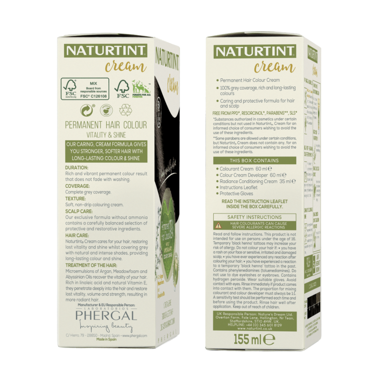 Naturtint Hair Colour Cream in 1N Ebony Black is a next-generation permanent hair colour that not only delivers complete grey coverage but also revitalises and strengthens mature or damaged hair. With its innovative Age Control Technology, this rich cream deeply nourishes the hair while adding long-lasting, radiant colour. A blend of Meadowfoam Seed Oil, Abyssinian Oil, and Argan Oil works to improve elasticity, restore shine, and enhance softness. Gentle and free from ammonia and PPD, the formula respects both the scalp and hair fibre, ensuring a vibrant, natural-looking black finish.